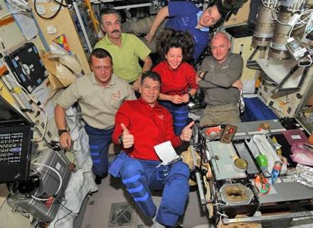 Столовая, она же спальня: члены экипажа спят в гамаках, которые подвешиваются под потолком.