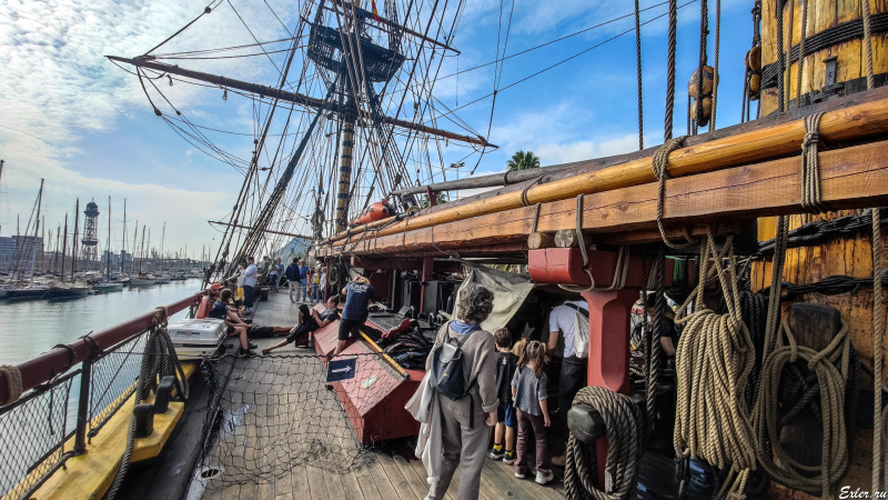 В порту Барселоны можно было не только посмотреть на этот корабль, и также разрешалось осмотреть корабль изнутри (для этого нужно было купить билет.)