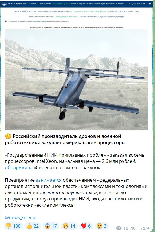 Зачем такие странные вопросы задавать? Если цена этого китайского коптера 25 тысяч рублей, то, очевидно, тысяч за 100 и поставляют. На этом же надо еще попилить, откатить и занести. Потому что всё для фронта, всё для победы!