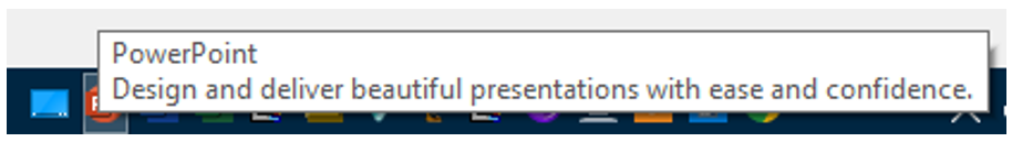 Кстати, я не знаю откуда у вас такая подсказка берется. У меня, например, на английской винде просто показывает надпись "PowerPoint" и всё.