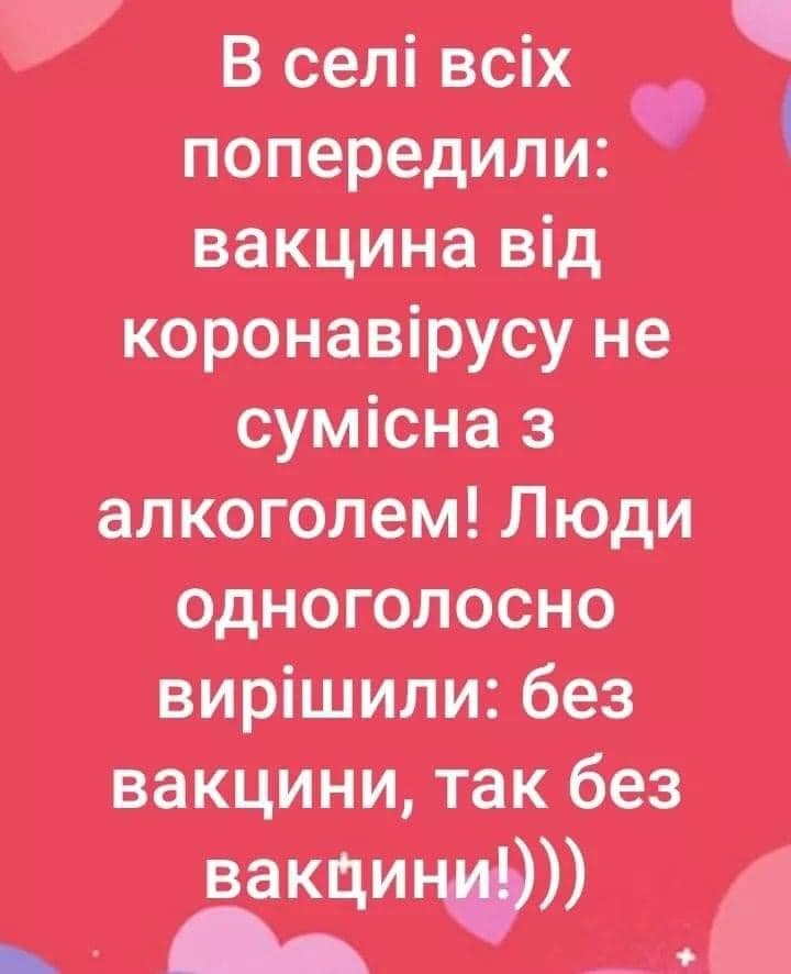 " В селе всех предупредили: вакцина от коронавируса не совместима с алкоголем. Люди единогласно решили: без вакцины, так без вакцины!"