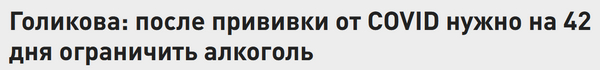 Люди недовольны. После российской вакцины нельзя пить 42 дня. Зачем паниковать раньше времени? После этой вакцины нужно ещё, между прочим, прожить эти 42 дня.