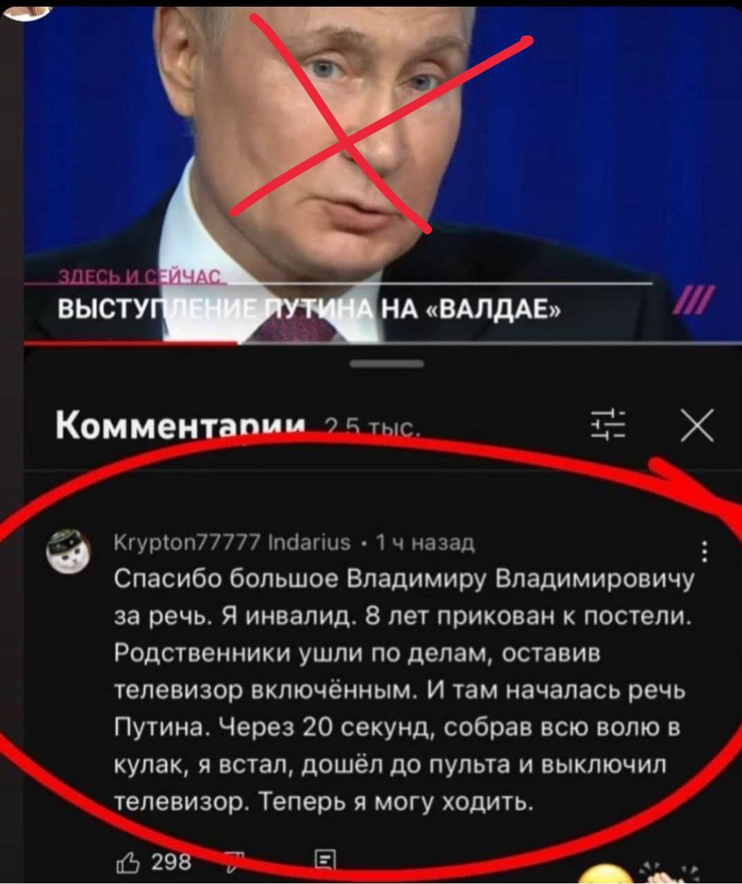 Самое хуевое, приезжаю к родителям сегодня. Они полностью зазомбированные телевизором уже, я хер знает че с ними делать (когда я слышу от бати, что у Зеленского есть киллеры, которые устраняют тех, кому он не нравится). Я с ними просто на эту тему не разговариваю. И вот я слышу из другой комнаты, как мама рассказывает по телефону подружке, что местного алкаша забрали, увезли в Пензу, оказалось, что он просрал военбилет, так сука его привезли обратно, сфоткали, оформили военбилет и отправили обратно. Притом, что он еще и в психбольнице постоянно тусит. Я не знаю, что дальше будет, я в ахуе