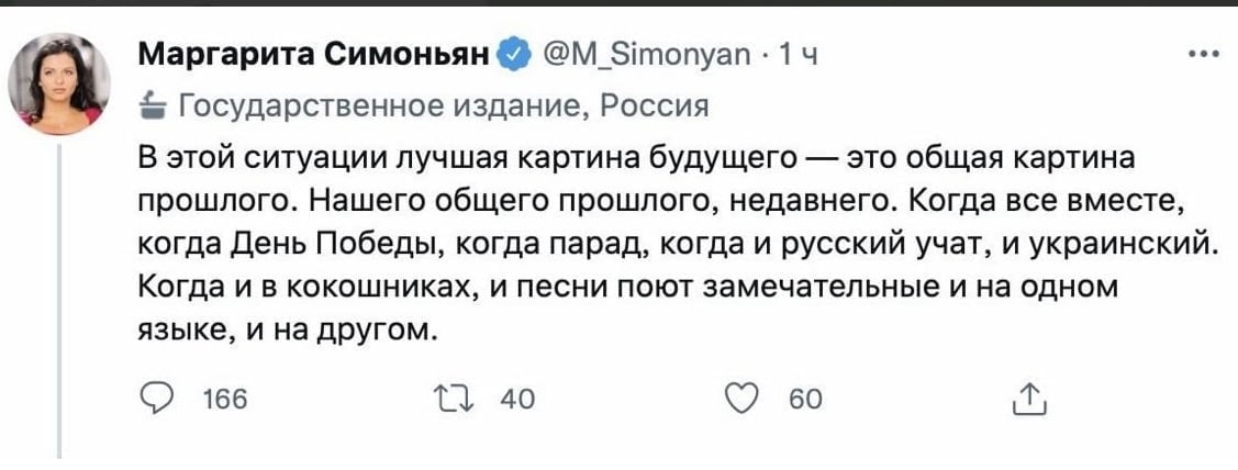Единственное, что сейчас нужно слушать и рассказывать- это сводки ВСУ. Они пишут историю, а не эти ФСБшные Соловьи, слова которых стоят столько же, сколько слова старика Хоттабыча или Гарри Поттера.