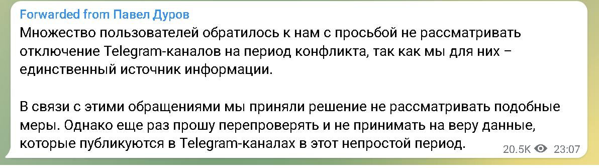 Тут про нехорошего агента ФСБ Дурова пошла волна, так вот не будет он ничего отключать