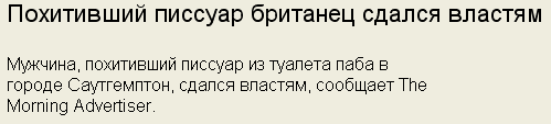 Я вот все силюсь процесс представить... подходит человек, отковыривает писсуар (и не любопытный русский, которому интересно, "а как оно прикручено и можно ли отковырять"), а англичанин... кладет к себе в рюкзак... дурдом на прогулке, не иначе.