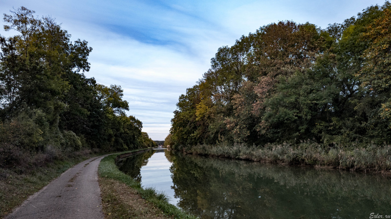 Ровно год назад, тоже в октябре, гулял вдоль очень похожего канала с такой же дорожкой в городе Сомбор в Сербии. Прям ностальгия теперь.