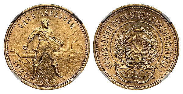 Кроме того, в 1975—1982 гг. Госбанк СССР выпустил монеты, которые сохранили внешний облик монеты образца 1923 года, но с изменёнными датами. Действующая инвестиционная монета Банка России с номиналом 10 рублей.