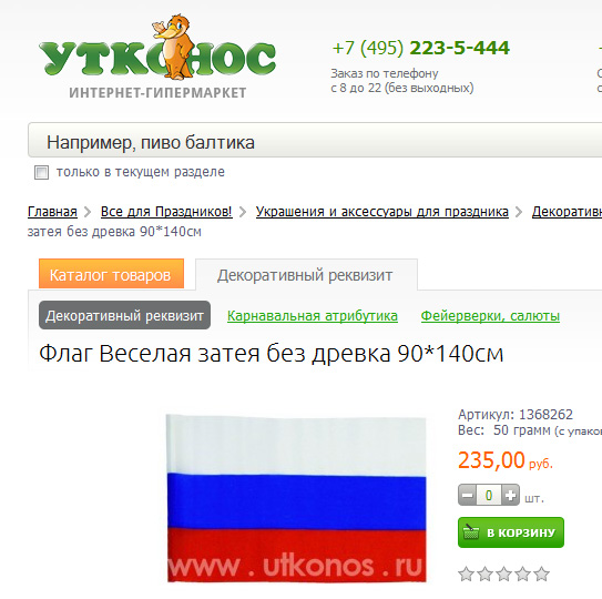 Кому веселую затею без древка? Правда, насколько я помню, гражданину России запрещено вывешивать или как-то использовать веселую затею самостоятельно - только в составе граждан, которые организованно идут показывать веселые затеи врагам государства. Но все равно можно прикупить, правильно?
