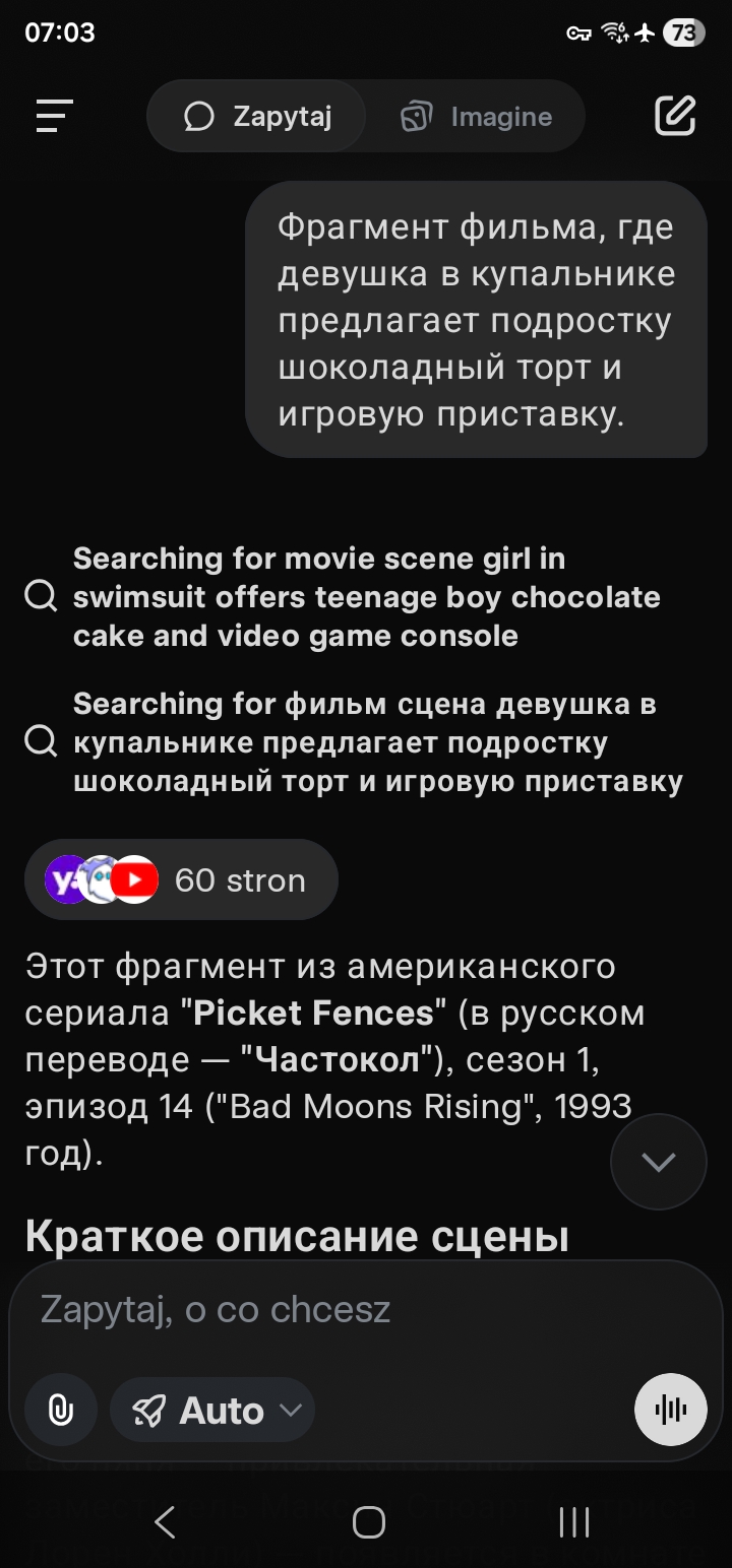 Сцена стала культовой и часто обсуждается в интернете как "мечта каждого мальчишки" 90-х, хотя и вызывает споры из-за возраста персонажа (подросток). Она не из полнометражного фильма, а из ТВ-сериала, но именно это и соответствует вашему описанию.