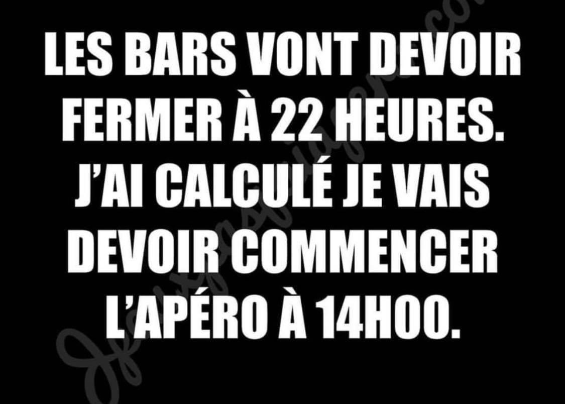 Лучшие умы чиновников Каталонии думают над тем, как остановить распространение вируса. Решение было найдено - все бары и рестораны должны закрываться в 22 часа, не позже. Ведь известно, что именно после 22 часов сила коронавируса возрастает многократно. Что характерно, ассоциацию рестораторов Каталонии такая разумная и продуманная мера никак не устроила, и они заявили, что тогда лучше вообще на хрен закроют свои заведения, чтобы претендовать на получение материальной помощи от руководства автономии, и чтобы они могли отправить своих работников на пособие. Но эта мера не устроила руководство автономии: они на данный момент не готовы выплачивать рестораторам компенсации.