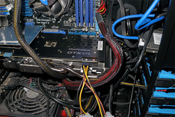 Было такое с прежними Радеонами. Сейчас вот стоит такой же по размеру монстр, только Radeon HD7970, тоже от ASUS и с таким же охлаждением (Direct CU II вроде бы называется). Рахъёмы питания сбоку.