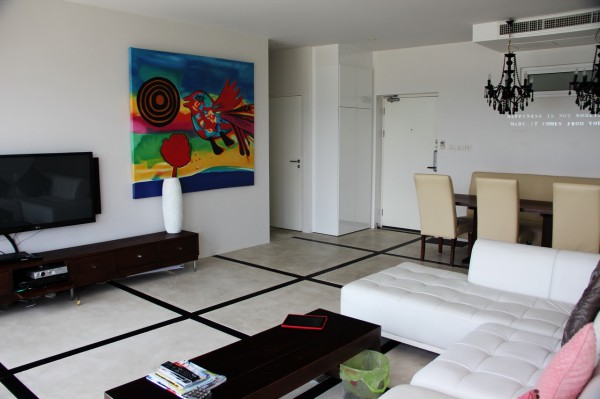 А вид этот - из пентхауса в три спальни, который нам показали в плане знакомства с местными реалиями. Вот гостиная этого пентхауса.