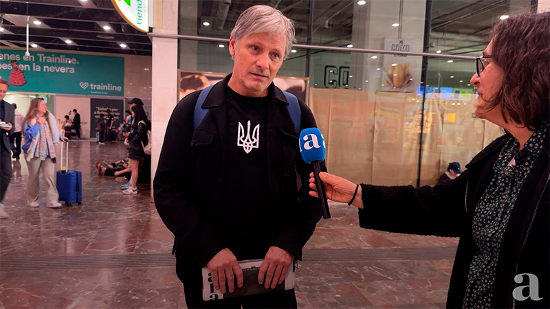 Кроме приживания в Аргентине и Венесуеле у Вигго Мортенсена диплом бакалавра по испанистике, живет в Мадриде с испанкой, так что было бы странно, если бы он испанским не владел...Хотя Арнольд по-немецки даже с немецкими журналистами не говорит.