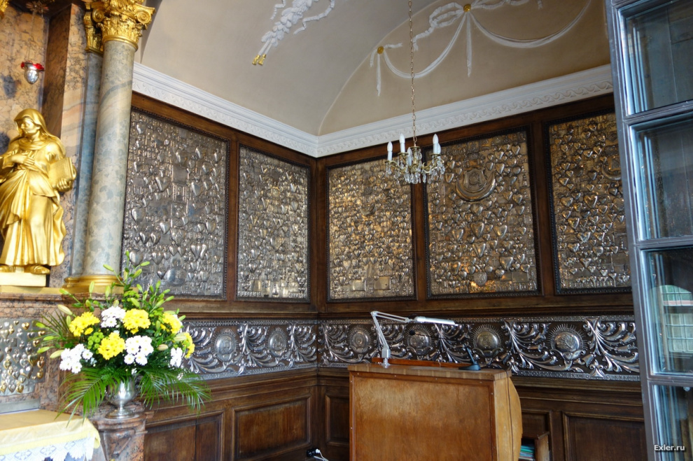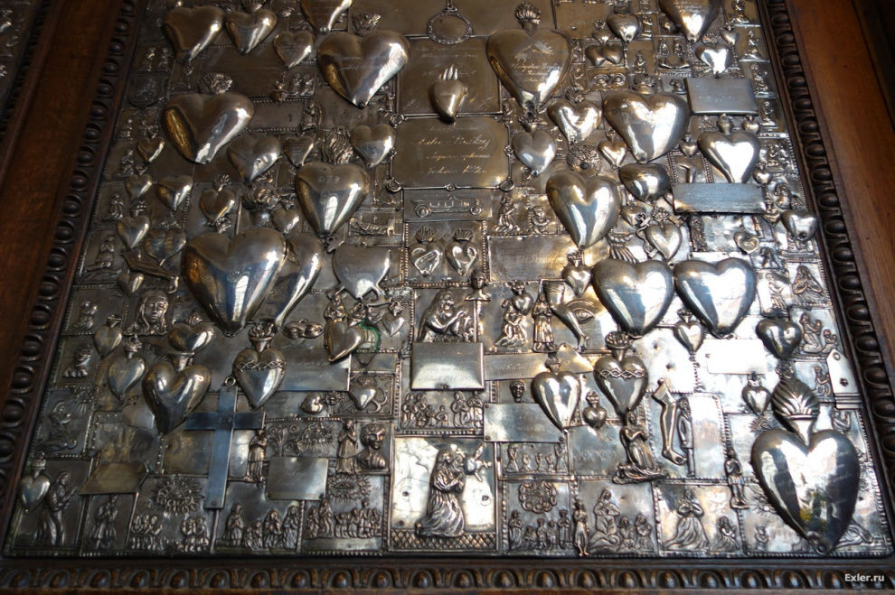 Здесь существует традиция (как и во многих других аналогичных местах): если икона помогла тебе и твоим близким избавиться от какой-то болезни, то в пользу часовни жертвуется серебряное или золотое изображение больного органа. Это все монтируется на специальные панели и выставляется в часовне. ("Оно и правильно, - заметил кот Бублик, - врачу-то будет достаточно всего-то подарить коробку конфет и бутылку".)