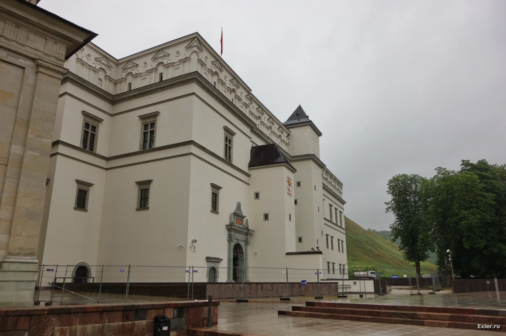 Сзади собора - дворец правителей Великого Княжества Литовского. Здание серьезно реконструировалось с 2000 по 2009 год и, как говорят местные, много кто из подрядчиков и ответственных за реконструкцию погрели на нем руки и смочили клювик.