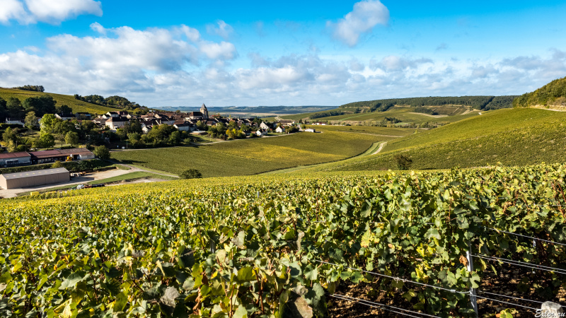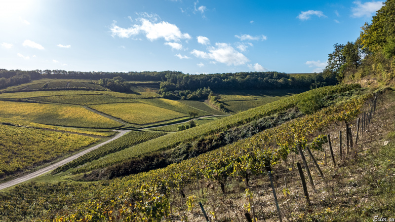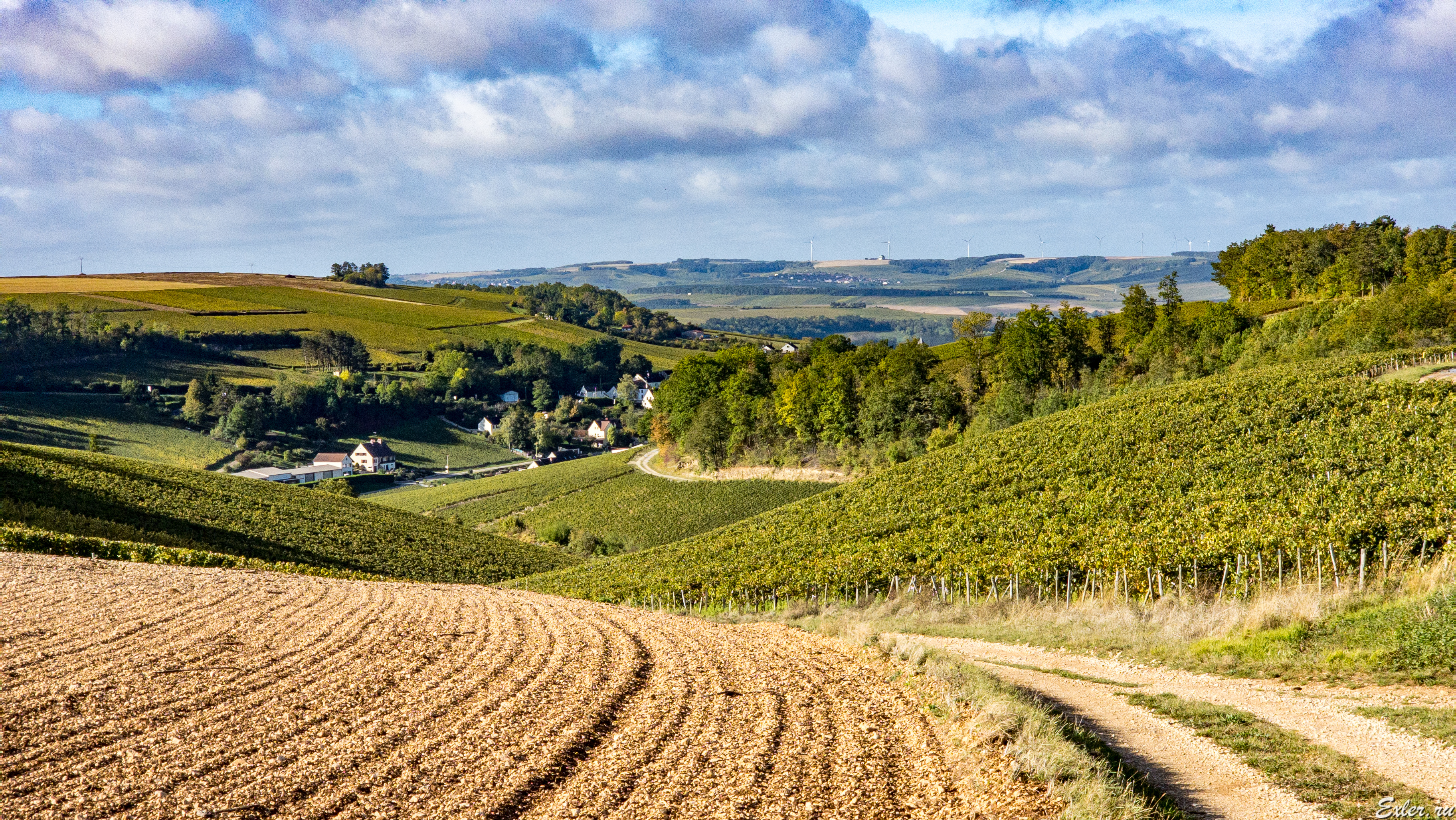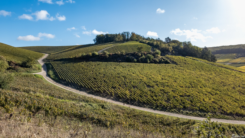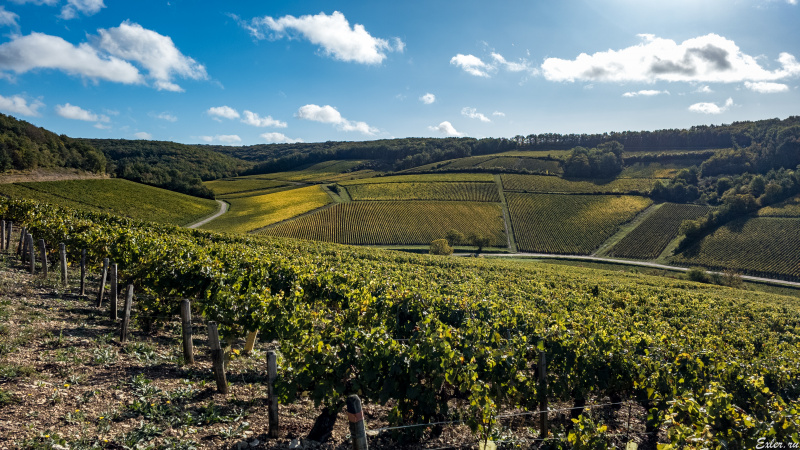 В поездке по Бургундии нам не слишком повезло с погодой - периодически шли дожди, - но в день Праздника вина в Шабли все-таки повезло: светило солнце, и виноградники Шабли предстали перед нами в том виде, в котором они смотрятся наиболее выигрышно. На этот раз мы к ним подобрались со стороны коммуны Флейс: как известно, в винодельческий регион Шабли входят 20 комунн, включая непосредственно город Шабли.
