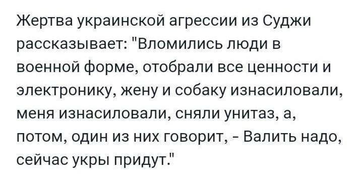 ВСУ продолжает наступательную операцию в Курской области, вчера под Рыльском они раздолбали целую российскую военную колонну  - 14 грузовиков с военными (z-патриоты, требующие расстрелять отдавшего приказ двигаться в колонне, говорят о численности погибших до батальона), Герасимов два дня назад заявил, что продвижение войск ВСУ остановлено, и что максимум через три дня войска РФ выйдут на границу РФ, так что все цели спецоперации по освобождению Курской области будут выполнены в полном объеме.