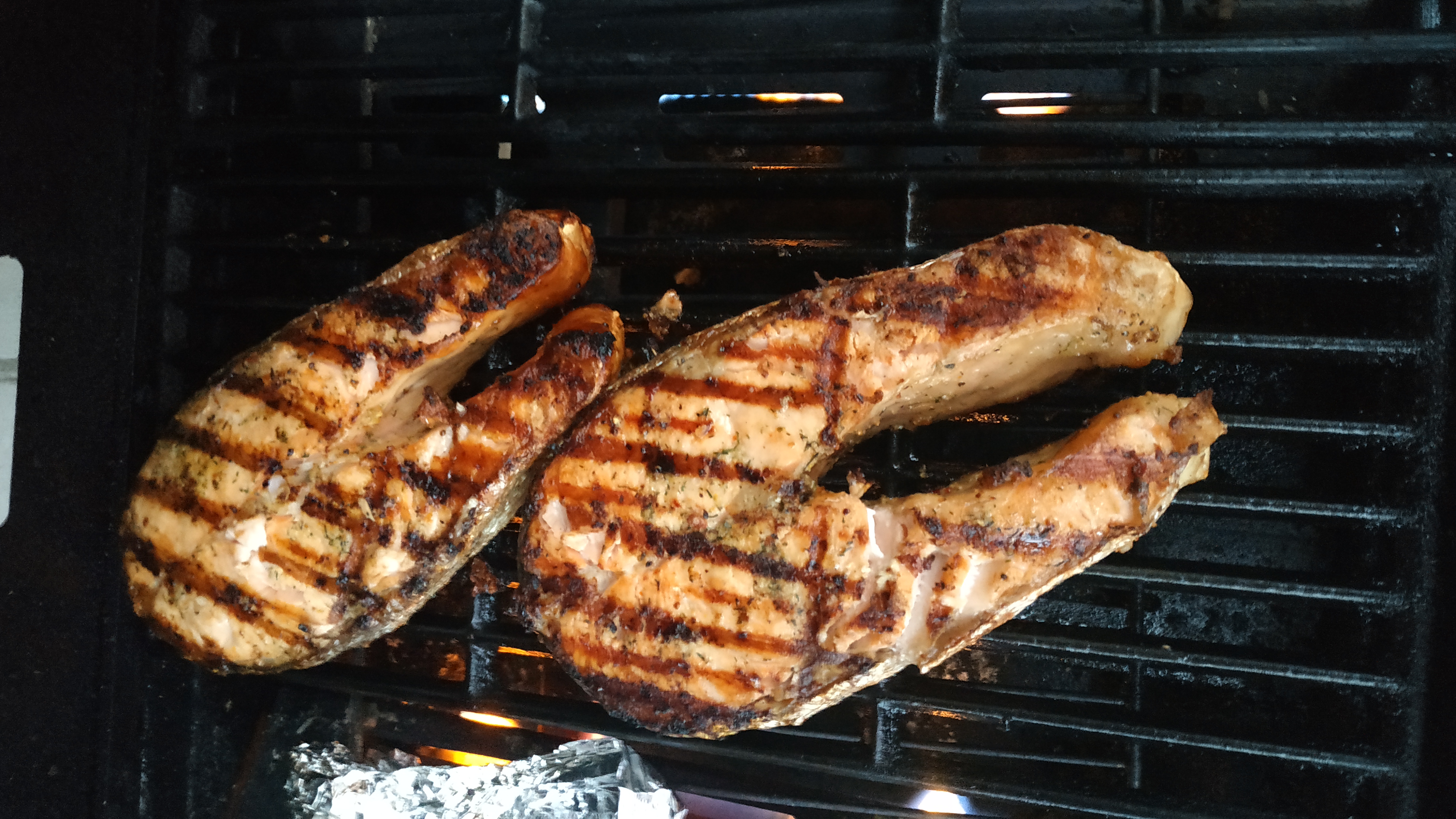 Я стейки из красной рыбы (форели) просто запекаю в духовке при 200 градусах 35-40 минут. Посыпав сверху смесью трав для салата (странно - но так вкуснее, чем "для рыбы").