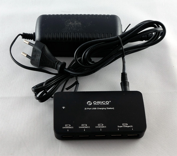 Первым было протестировано зарядное устройство Orico DCP-5U. Давно такое хотел - в поездках гаджеты заряжать. Теперь вместо того чтобы таскать с собой 3-5 сетевых адаптеров и тройник-удлиннитель - беру это устройство. Оно со мной сразу же скаталось на IFA, и я в полной мере оценил его полезность.