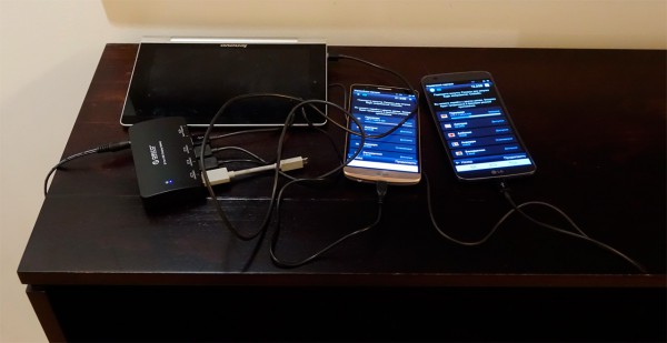 Мне в поездке обычно приходится заряжать три смартфона (испанский, московский, итальянский Vodafone для Интернета), фотоаппарат (один или два - все Sony, так что через USB), мобильный роутер и планшет. Не всегда это нужно заряжать все сразу, но 3-4 устройства на ночь нужно ставить практически всегда.