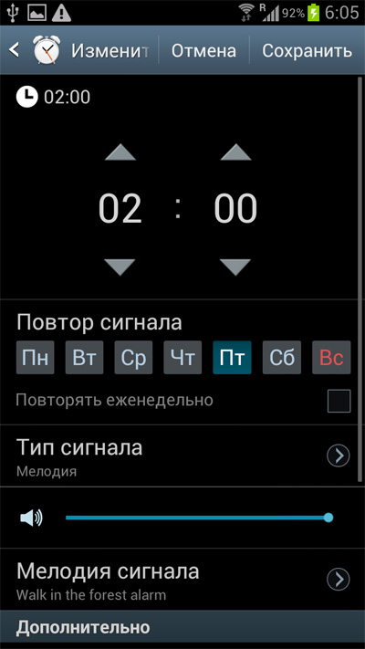 Стал разбираться, как же такое все-таки произошло. Поставил новый будильник на Galaxy S III с параметрами по умолчанию, как вчера.