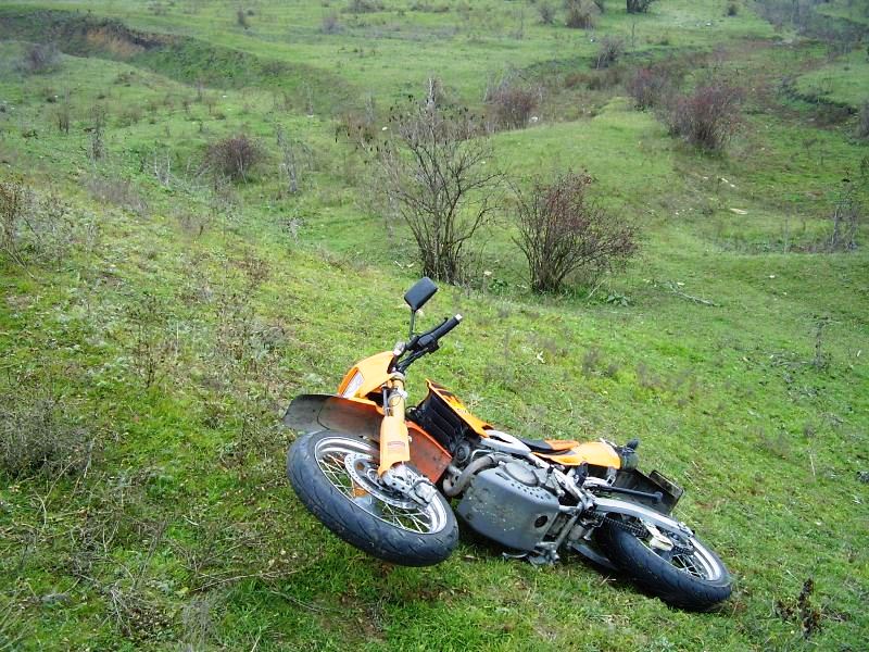 Но чтобы байк с включенным двигателем еще и руками толкать - такого не видел.