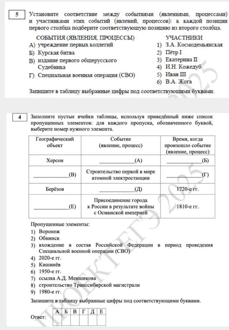 Пишут, что это проект вопросов к следующему ЕГЭ по истории. И тут есть, конечно, странности. Правильный ответ на "Курская битва" должен быть "Апти Алаудинов". А на "Специальная военная операция" - "Путин В.В.". С Херсоном, который, по мнению составителей вопросника, вошел в состав РФ в период проведения СВО, тоже, знаете ли, хер там.