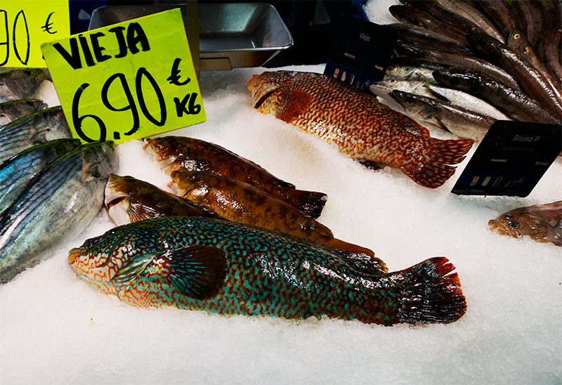 Поехали. Пятница вечер, пробки. Доехали. Посмотрели, сколько народу перед нами, пригорюнились. Ну, надо стоять, куда деваться. А там даже проблема не в том, что перед нами много народу, а в том, что в местных магазинах тебе еще рыбу разделывают, как ты скажешь. И на это уходит основное время. Потому что когда каталанская бабушка покупает рыбку для большого семейного субботнего обеда, то там не только дофига всякой разной рыбы, но еще и одну из них надо только почистить и выпотрошить, другую еще и разрезать на кусочки, из третьей сделать только филе (а филе из морского черта - это минут 10-15 возни), у четвертой отрезать голову и жопку, а тельце располосовать на каталанский флаг - в общем, это то еще развлечение.