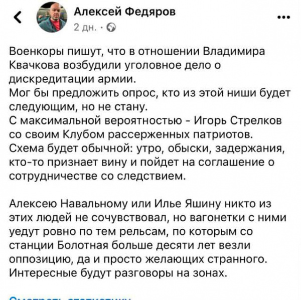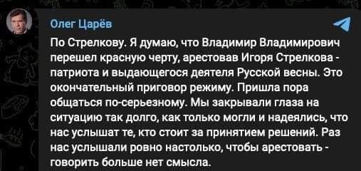 В этой или предыдущей ветке про Гиркина поставили линки на другие телеграм ресурсы «злых патриотов»