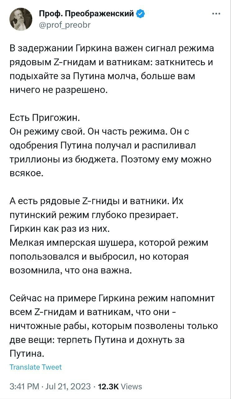 Гиркин ещё худшее дерьмо, фашист, мерзость (подчеркните всё), чем то, что сейчас командует войной.
