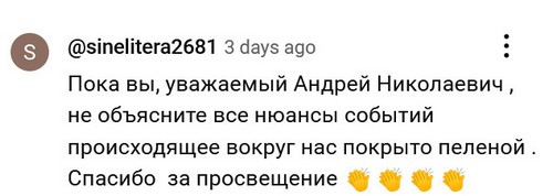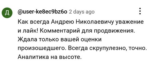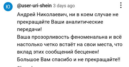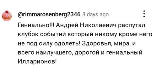 В комментах пользователи с никами типа rimmarosenberg2346 или sinelitera2681 писаются от восторга. Аналитик от Бога, просто от Бога. Какой ясный ум, какая огромная глыба! Более 200 тысяч просмотров.