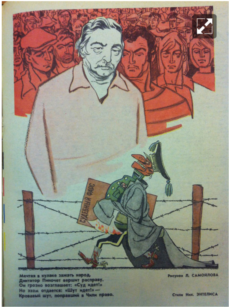 Это карикатура 1974 года на Пиночета. В тот год будущий диктатор Лукашенко ещё только собирался отправиться служить инструктором политотдела в погранвойска КГБ СССР.