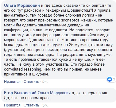 - Вывод - поскольку тетки на самом деле ничего ему не говорили про причины своего участия-неучастия, обиделся на предполагаемое гендерное неравенство именно мужик. Улавливаете?