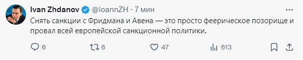 "Так что они остаются под санкциями, поскольку список был обновлен в начале этого года, но это плохой сигнал", - написал он в X.