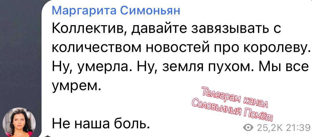 Травоядно - это если промолчать. Впрочем, чего ожидать от Симоньян? Завтра Захарова ещё какую-нибудь гадость скажет.