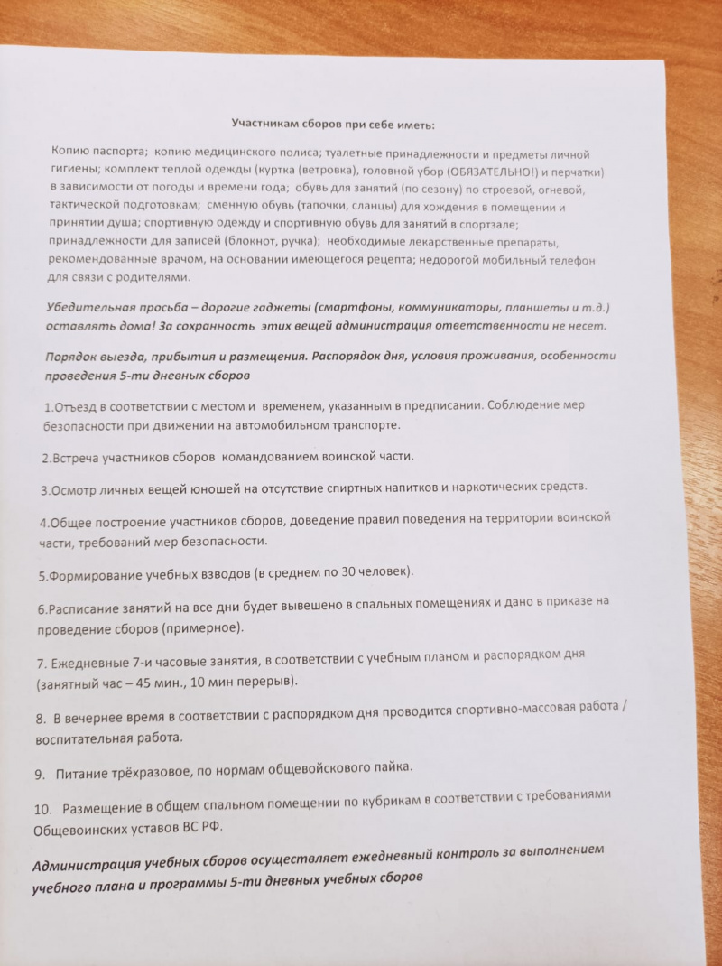 - участвуют в организации учебных сборов;