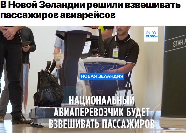 31 мая 2023 г. — Управление гражданской авиации Новой Зеландии обязало своего национального авиаперевозчика взвешивать пассажиров. Об этом сообщает CNN.