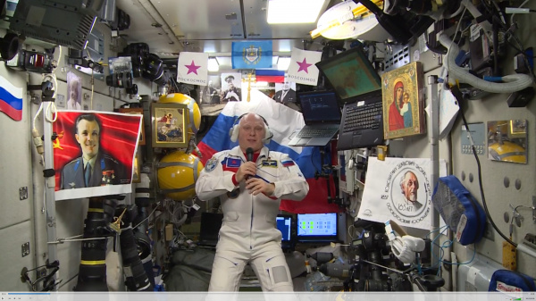 А других космонавтов у них для нас нет. Только такой есть, благостный. На фоне размалеванных досок и портрета Гагарина. Еще у него там "флаг ДНР" где-то болтался - странно, почему убрал-то?
