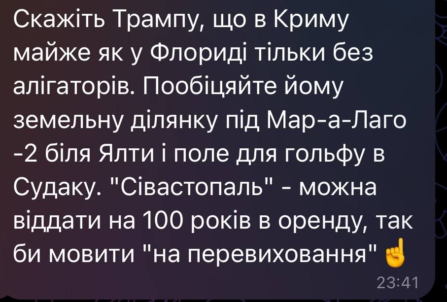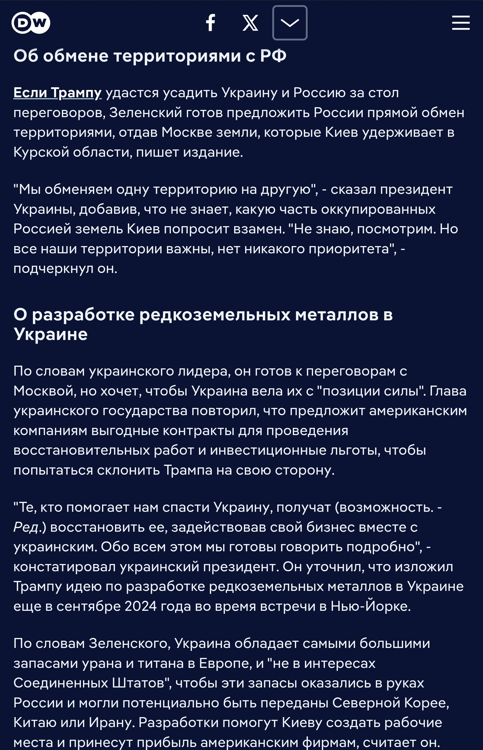 Если возможность получить американские инвестиции в разработку этих металлов и соответствующее отстраивание разрушенного войной региона стоит того, что американские же войска будут охранять нашу границу -- мне будет норм.