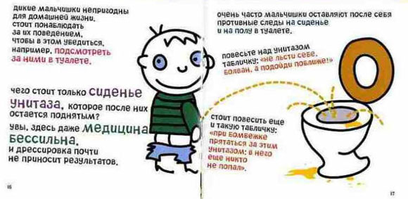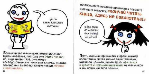 Мальчишка сидит на унитазе и читает ЭТУ САМУЮ КНИГУ. А текст под картинкой прямо говорит, что это "ерунда с картинками". 😄