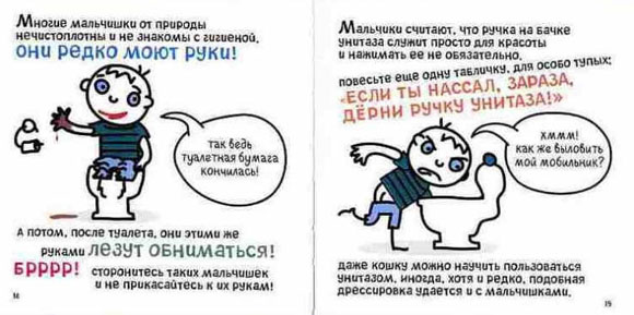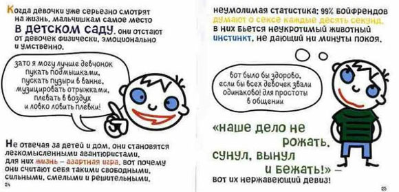 Мне как-то в руки попадала книжка под названием "Все мальчишки - дураки, все девчонки - умницы!" Тема та же, но написано как-то по-доброму и с нормальным юмором. И точно нет никаких "нассал" и "болван".