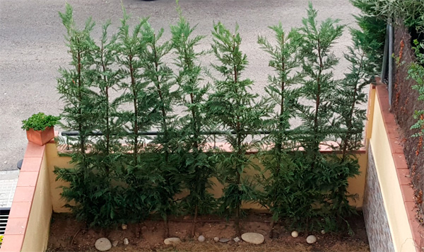 Вот они, подрезанные кипарисы. Скоро превратятся в живую изгородь. Лет через пять. Если их правильно будут подрезать.
