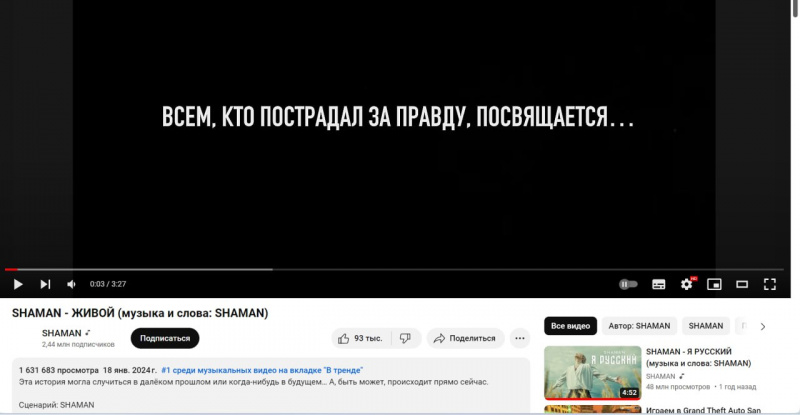 Посмотрели новый клип певца SHAMAN «Живой». В начале клипа на экране написано, что он посвящен всем, кто пострадал за правду. Хотя какое отношение имеет... ну ладно. Надпись гаснет, начинается действие.