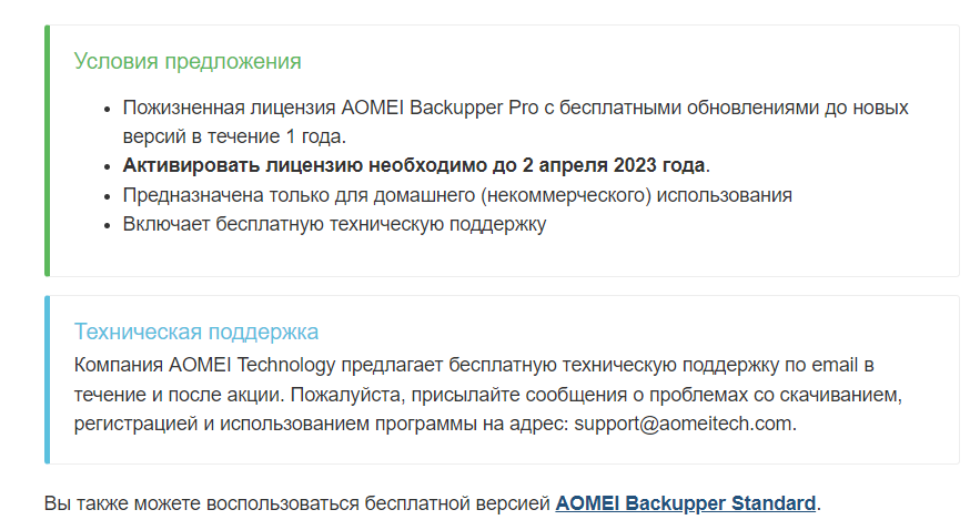 Пожизненная лицензия AOMEI Backupper Pro с бесплатными обновлениями до новых версий в течение 1 года. Но тоже неплохо.