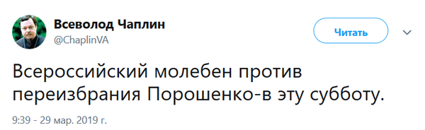 Так это... если переизберут Порошенко (а его таки переизберут - не в первом, так во втором туре, иначе для чего еще Зеленский в списках?), то виноват Чаплин?