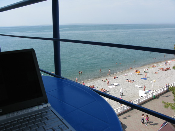 Вот и мне на шезлонге с ноутом ну ни капли не понравилось. А вот наличие столиков на балконах у побережья в сочи оценить не успел, отдыхал в основном в Аше, там куда спокойнее и свободнее.
