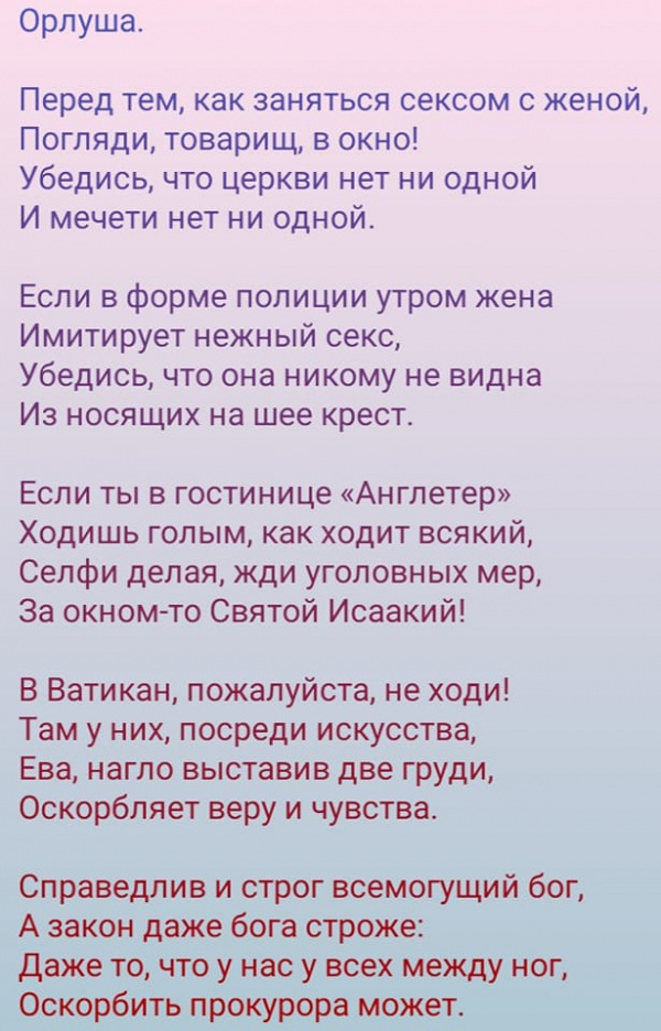 Можно подумать, депутаты это сами придумали, и церковь тут совсем-совсем не при чемДумать, что "законы о защите чувств верующих" принимались для верующих - это как думать, что "пролетарское государство" только и делало, что заботилось о пролетариях.