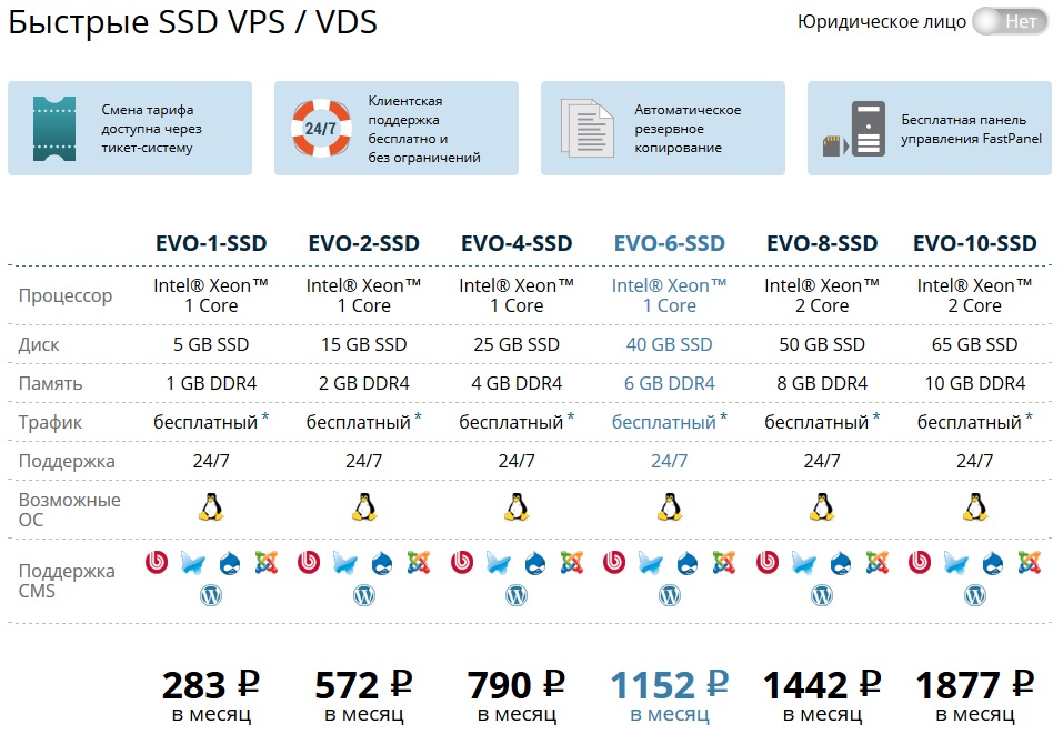 Гибкая система тарифов позволяет не только выбрать тот уровень производительности, который актуален для проекта сейчас, но и мгновенно, буквально «на лету» изменить его на любой другой из той же линейки без необходимости остановки работы ресурса.