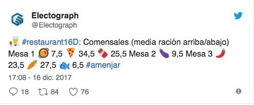 Кстати, в Испании запрещено публиковать результаты опросов общественного мнения по поводу тех или иных политических предпочтений менее чем за неделю до выборов, но газеты с легкостью обходят этот запрет, публикуя картинки "Заказов в андорском ресторане". Цвет каждого блюда соответствует цвету партии, а количество заказов - предварительный процент голосов. Испания, такая Испания. Вот данные от 16 декабря - "Ресторан 16D":